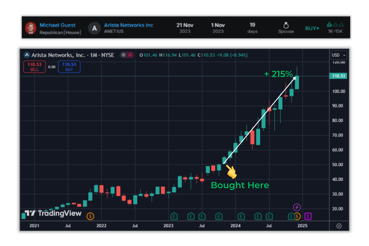 Michael Guest: Bought ANET before it soared by 215%